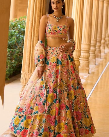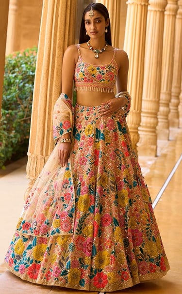 Bridal and party-wear lehengas with intricate embroidery and stunning designs